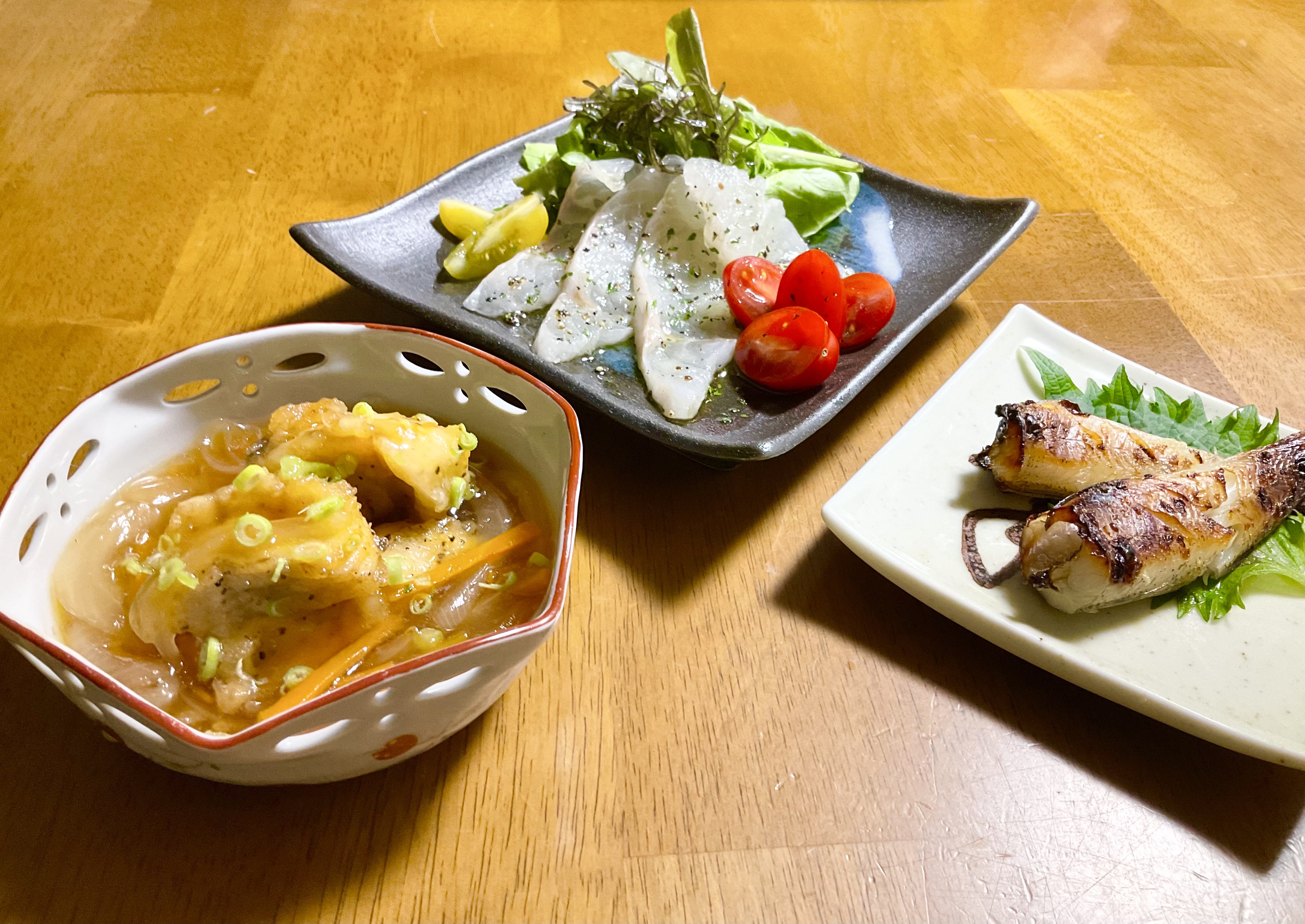 早速、カルパッチョと甘酢あん煮にしまして、